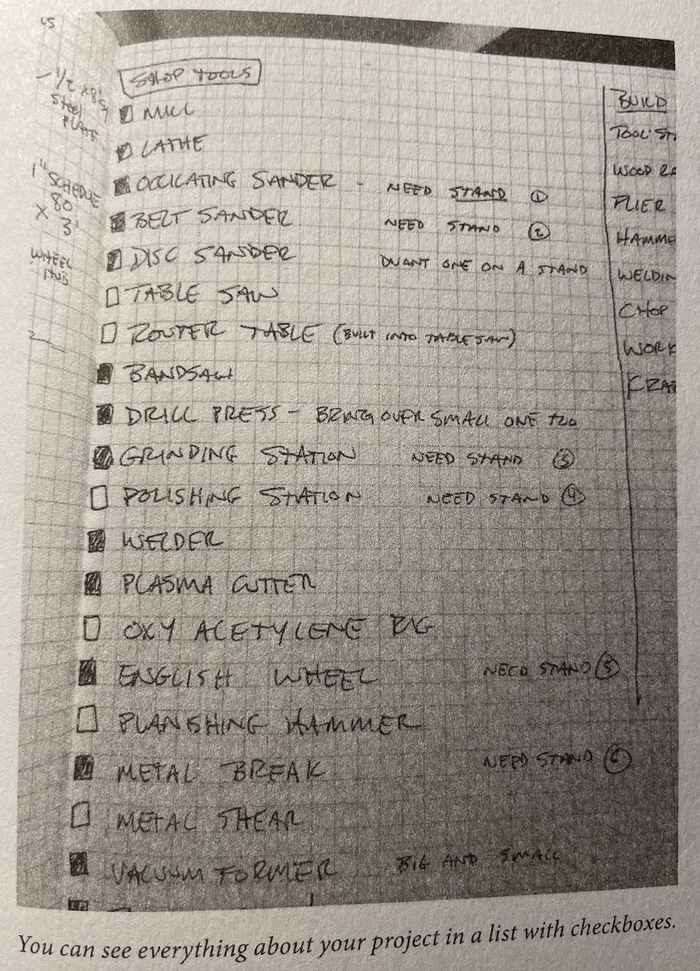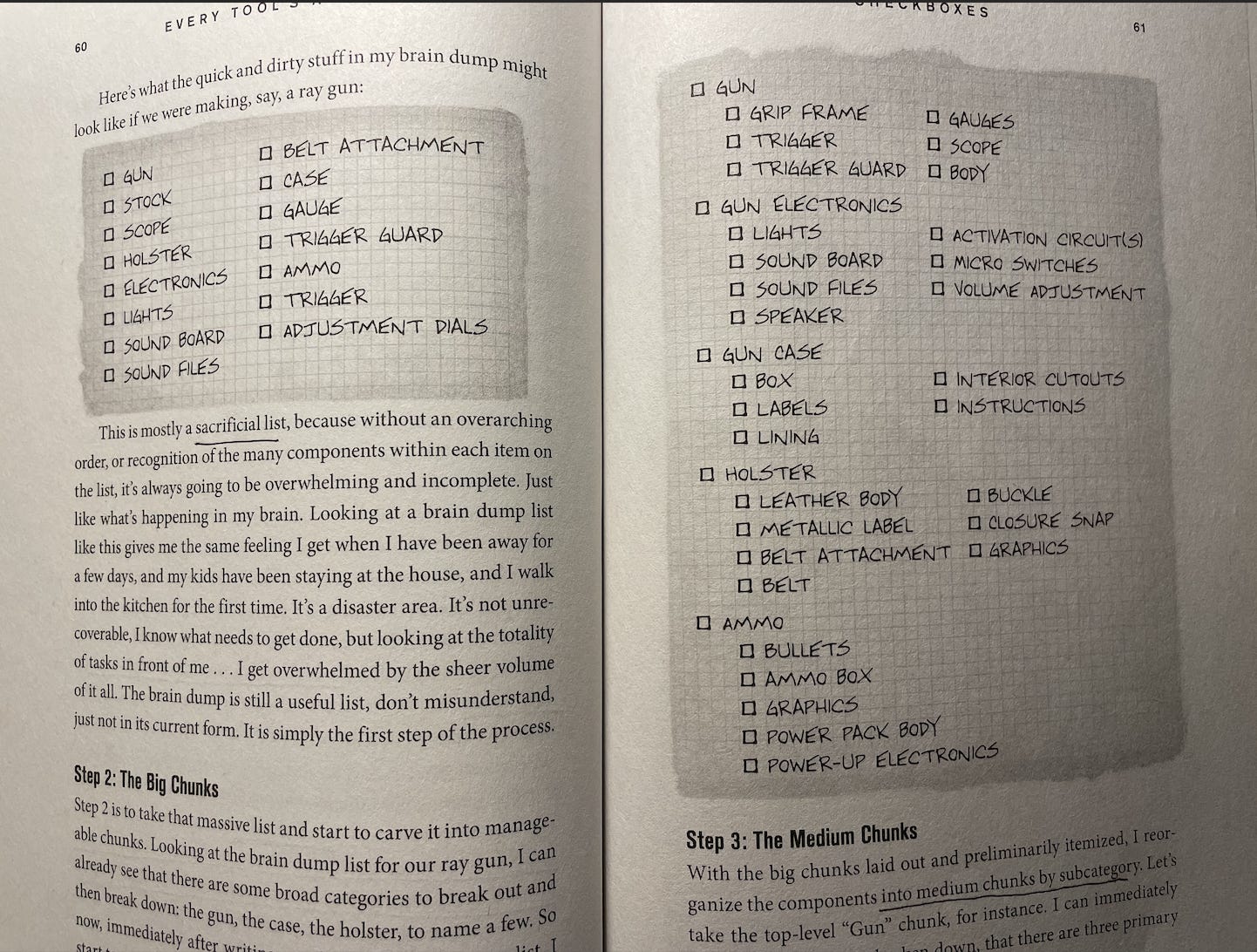 The final piece of the list puzzle is a whole chapter dedicated to the power of the checkbox and why checkboxes are the superior way of listing a checklist item. He really loves checkboxes having learned them at Industrial Light & Magic (ILM) - George Lucas’ visual effects company: